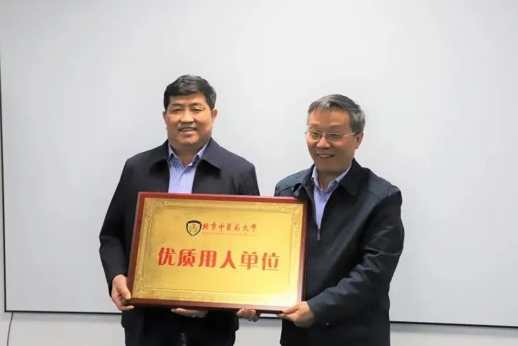 會議最后,陶校長為九芝堂頒授了“北京中醫藥大學優質用人單位”牌匾。