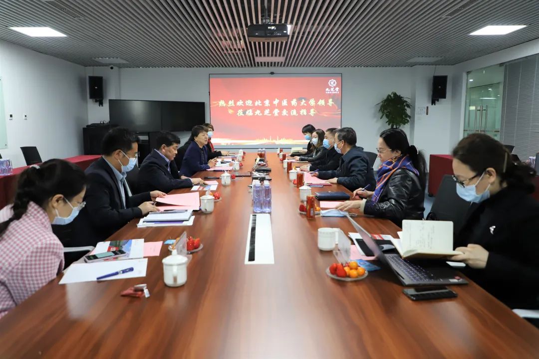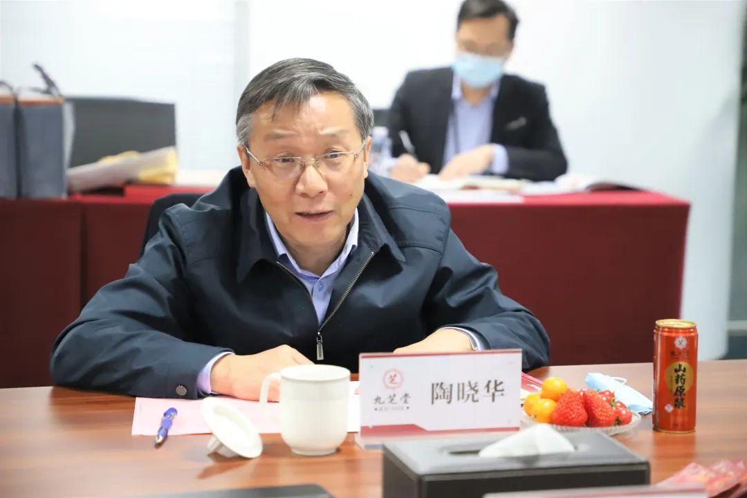4月6日下午,北京中醫藥大學副校長陶曉華、黨委副書記張繼旺、招生與就業處處長田潤平、副處長徐靜、市場部負責人于歡一行蒞臨九芝堂,共同回顧前期合作情況,并就下一階段如何更加深入、廣泛地開展校企合作進行交流座談。董事長李振國、常務副總經理劉春鳳、副總經理務勇圣出席會議,品牌建設總監兼總裁辦公室主任劉坤晶、人力行政部部長王立芬、部長助理謝俊哲,北京美科副總經理陳琳潔、醫療健康副總經理何欣一同參加座談。