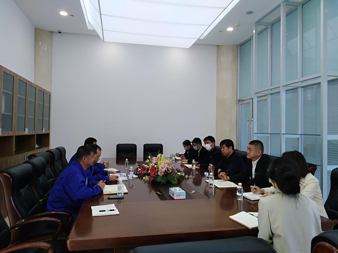 市檢驗檢測中心領導分別參觀了公司計量室、水針公用工程和公司文化展廳,并在公司辦公樓一樓會議室內與公司領導開展座談。