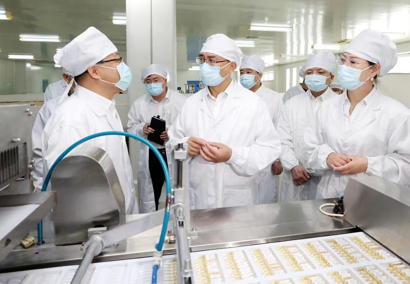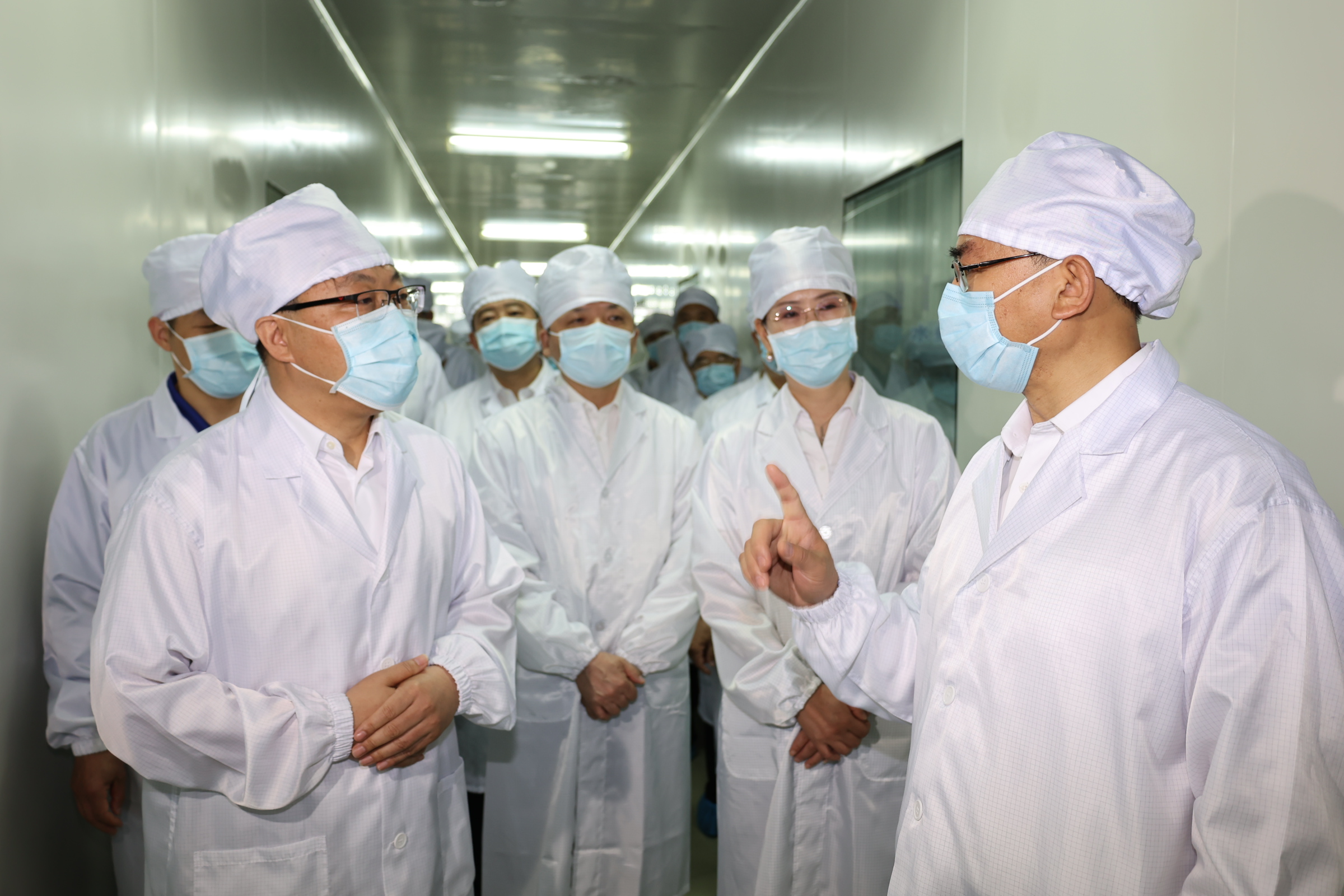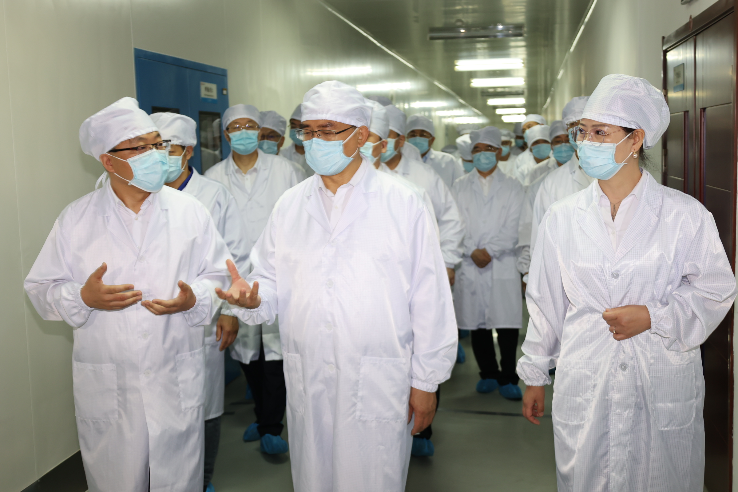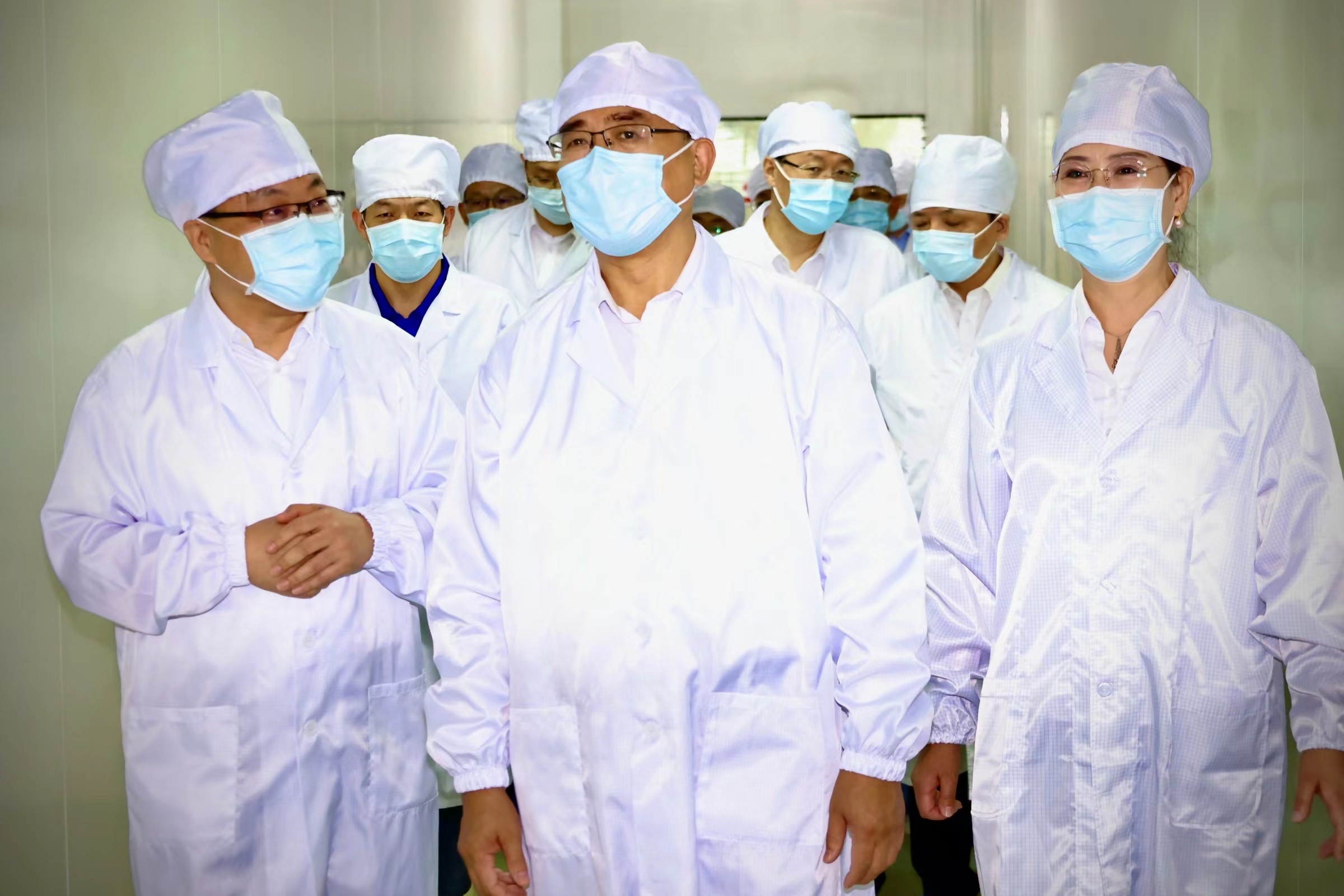 在參觀生產工藝過程中,許勤書記多次駐足停留,他饒有興趣的拿起九芝堂獨家品種“疏血通注射液”針劑產品并仔細觀察, 他鼓勵企業,要深化生物技術創新,堅持基礎研究與應用研究協同發展,推動關鍵核心技術攻堅突破,努力掌握更多“獨門絕技”。許書記強調,作為牡丹江生物制藥龍頭企業,要深入貫徹習近平總書記關于生物技術創新與應用的重要指示,認真落實省黨代會精神,堅持全球視野,樹立前瞻思維,搶抓生物技術與產業發展的戰略機遇,用足用好鼓勵支持政策,建設國家生物經濟新基地,打造龍江“換道超車”新引擎,同時也做好疫情防控工作,加力推進全面振興,實現全方位振興。