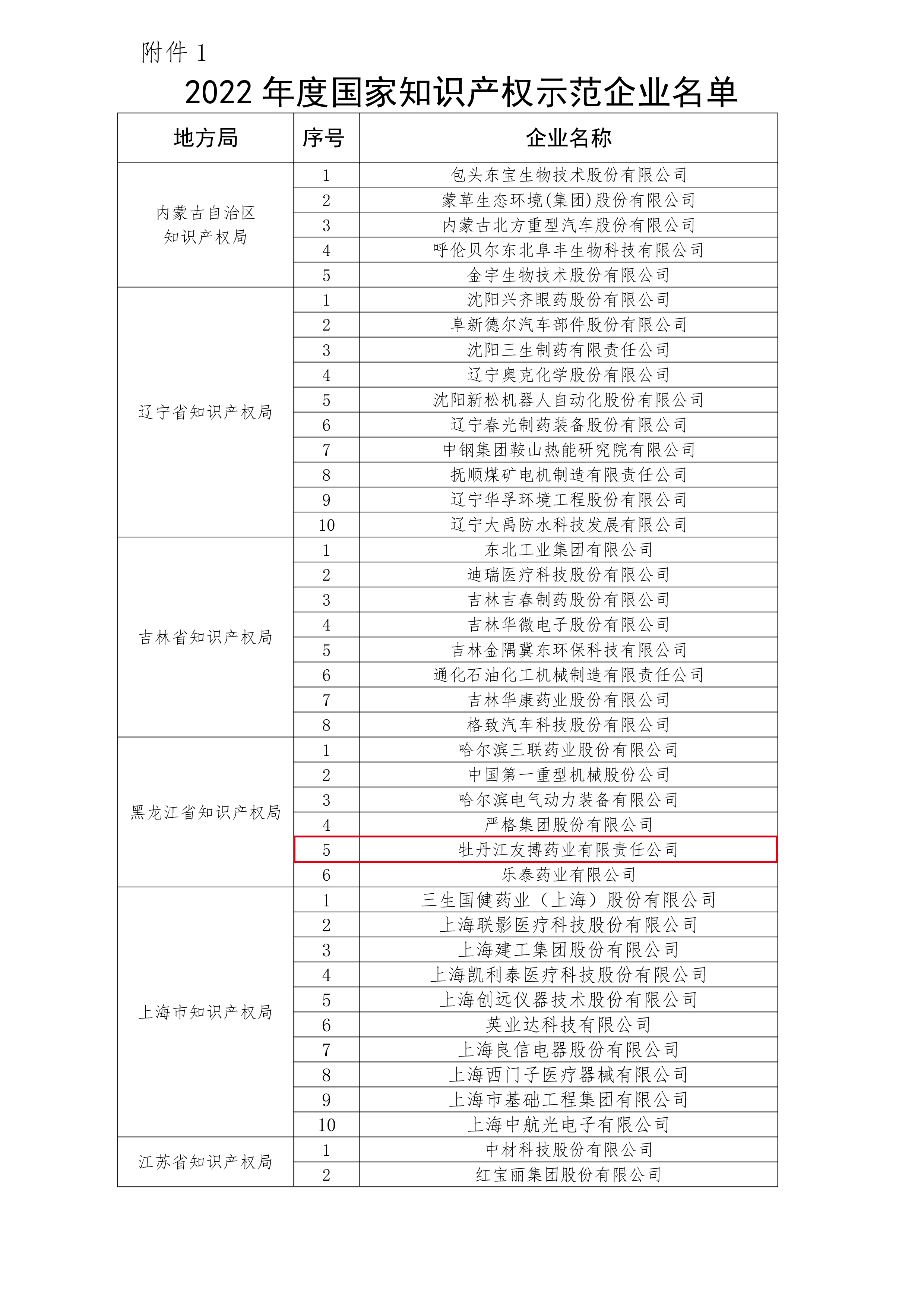 9月23日,國家知識產權局運用促進司發布了2022年度國家知識產權示范企業公示名單,友搏藥業經企業測評、推薦上報、審核確認等程序后榮譽上榜。