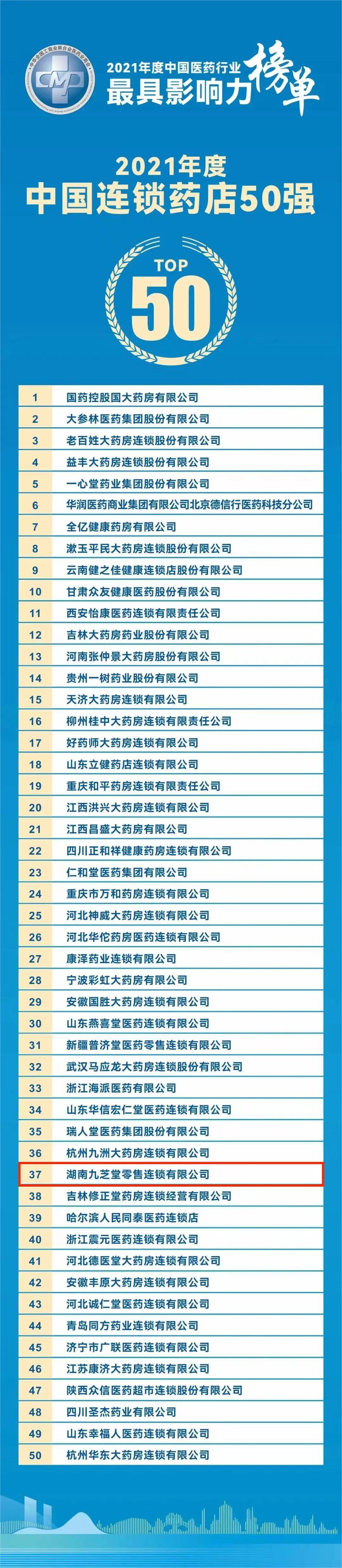 九芝堂憑借過硬的實力和穩步的創新發展,榮登“2021年度中國醫藥制造業百強”及“2021年度中國連鎖藥店50強”兩大榜單!