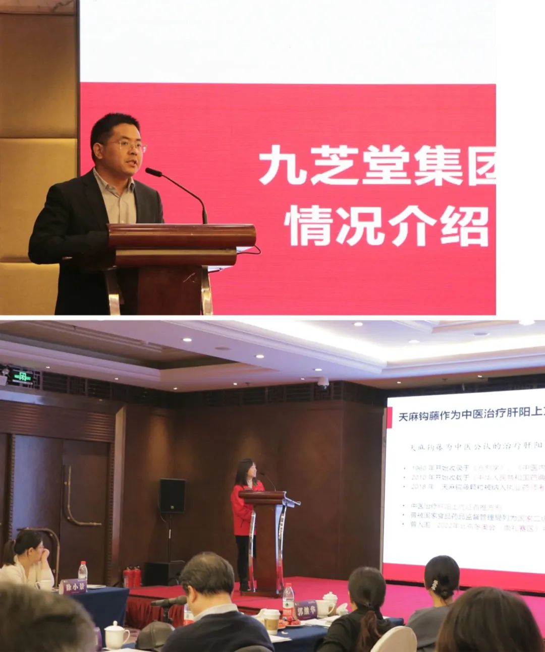 會上,九芝堂股份有限公司副總經理、研發總監務勇圣對九芝堂百年企業文化和公司未來的發展戰略做了簡單介紹。成都九芝堂金鼎藥業有限公司醫學市場部部長張燚介紹了天麻鉤藤顆粒的處方來源、開展的臨床指南/專家共識收錄情況,以及開展的藥理及臨床研究情況。