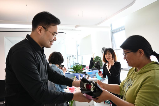 北京美科總經理高巖嵩代表公司親自為每位女神送上溫暖而美好的節日祝福,祝愿所有的美科“女神”們眼里有星辰大海,心中有繁花盛開。同時也為每位男員工的妻子準備了一束鮮花,以此送上節日的祝福,并感謝家中女神們對其工作的支持。